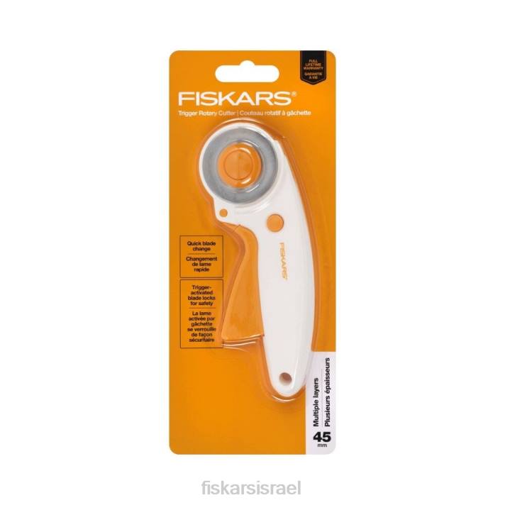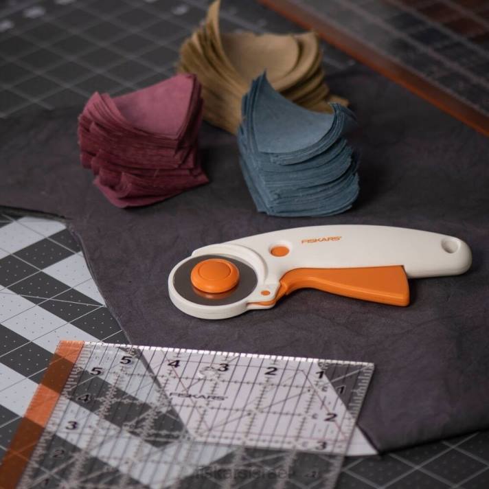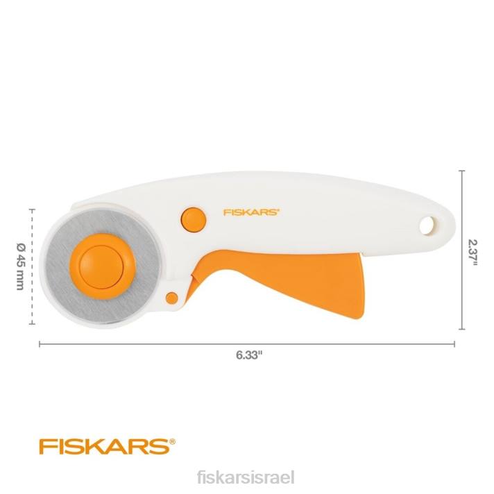 - חותך סיבובי מפעיל של fiskars, 45 מ”מ אידיאלי לחיתוך שכבות מרובות. מבד, לבד וויניל, עם חשיפת להב של 7 מ”מ בעת השימוש