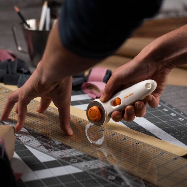 החותך הסיבובי מקל טיטניום של Fiskars Easy Change (45 מ”מ) כולל מערכת רכזת להבים מגנטית להחלפת להבים בטוחה יותר, קלה יותר וללא מגע. הלהב בגודל 45 מ”מ אידיאלי לחיתוך שכבות מרובות של בד, לבד וויניל, וציפוי להב הטיטניום שלו קשה פי 3 מפלדה לעמידות יוצאת דופן. הלהב עשוי מפלדת פרימיום בדרגה גבוהה, טחינה מדויקת לחדות מתמשכת המאפשרת חיתוכים חלקים ומבוקרים. כפתור הזזה מאריך את מגן הלהב להגנה מאובטחת במהלך האחסון. הידית המפוסלת בצורה ארגונומית של החותך הסיבובי הזה עם נקודות מגע softgrip מציעה שימוש ממושך נוח, והעיצוב הסימטרי והדו-צדדי שלו מאפשר חיתוך קל ביד חופשית עם יד שמאל או יד ימין, והוא מציע חשיפה אופטימלית ללהב לשימוש בזוויות חיתוך מרובות.