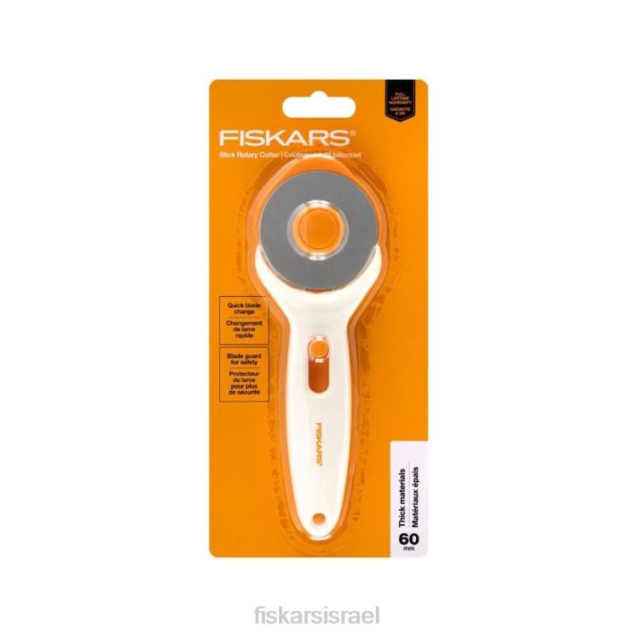 - חותך סיבובי מקל fiskars (60 מ”מ) אידיאלי לחיתוכים חלקים דרך חבטות ובדים עבים, כולל קנבס, ג’ינס ועור