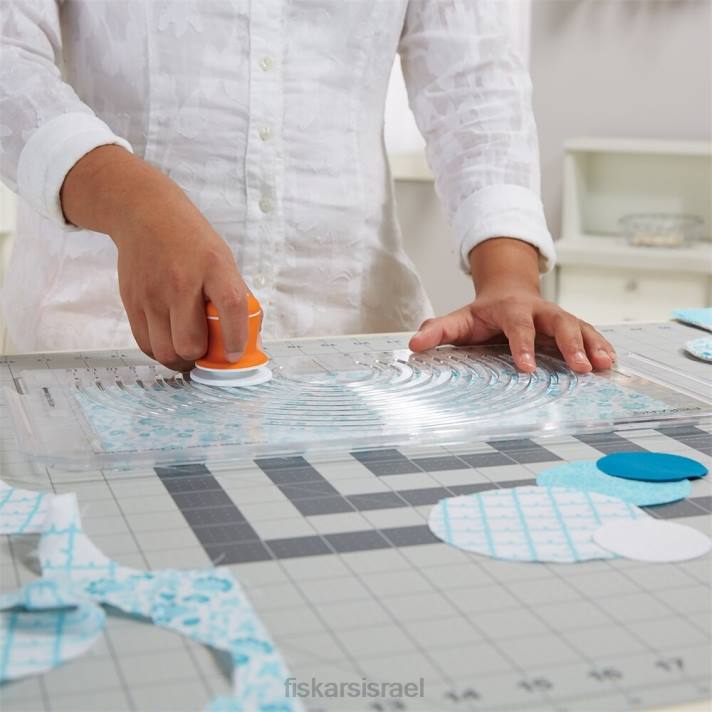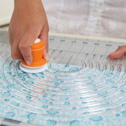 חותך עיגולי הבד עוזר לך לחתוך עיגולים ומסגרות נקיים ועקביים מבלי להתחקות או לחתוך ביד חופשית מתנודדת. חותך דחיפה נוח מחליק בצורה חלקה לאורך מסלולי התבנית עבור עיגולים בקוטר של 2 אינץ’ עד 12 אינץ’. הידית המסתובבת שלו מאפשרת לך לבצע את כל החתך מבלי להתפתל או להגיע, בעוד softgrip רך מסייע להגביר את הנוחות. קצבת תפר מעגל מובנית בגודל 1/4 אינץ’ וקצבת תפר חצי עיגול אופציונלית של 1/4 אינץ’ מוסיפות נוחות. כדי לחתוך עיגול, פשוט קפל את הבד לשניים והנח את התבנית מעל, תוך יישור השפה התחתונה של התבנית עם הקצה המקופל. מקם את החותך באחד מ-11 מסילות, לחץ כלפי מטה כדי לחשוף את הלהב ולאחר מכן הפעל אותו לאורך המסילה למעגל ללא דופי ללא קצוות מחוספסים, בליטות או חורים.