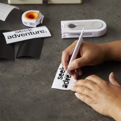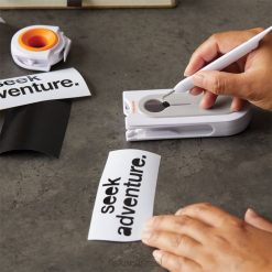 - חותך, המאוחסן בחלק העליון של הכלי, כולל להב פלדה ברמה גבוהה המחליק דרך ויניל מגולגל סרט העברה