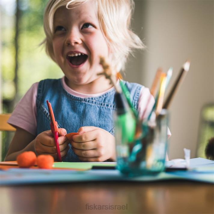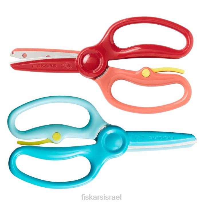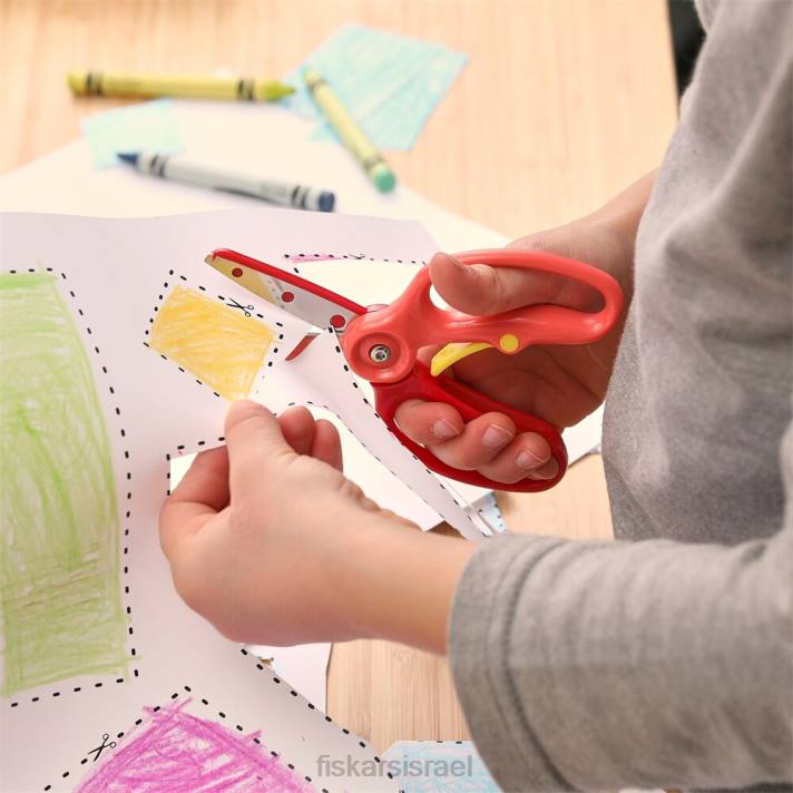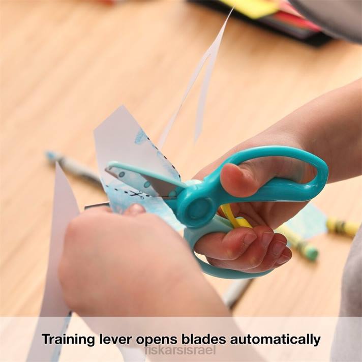 - למספרי אימון של fiskars יש מנוף אימון מיוחד עם פעולת קפיץ שעוזרת ללמד ילדים בגילאי שלוש ומעלה כיצד לחתוך עם מספריים