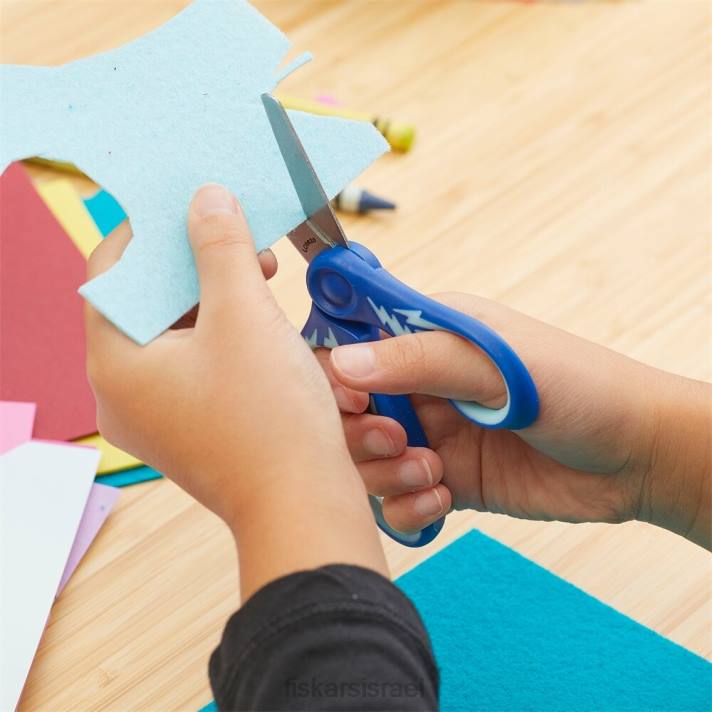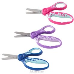 - מספריים לילדים קהים בקצה fiskars softgrip שיהיה כיף , ידית אחיזה נוחה לשיפור האחיזה והפחתת עייפות