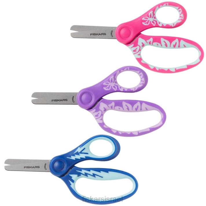מספריים לילדים עם קצה קהה מסוג fiskars softgrip מעוצבים בקפידה עם להבים בקצה בטיחותי, קצה קהה לבטיחות נוספת, וידיות שעוצבו במיוחד עבור ידיים של ילדים בצבעים עזים שהם אוהבים. ידית softgrip נוחה משפרת את האחיזה ומפחיתה את עייפות הידיים, בעוד לולאת אצבע גדולה יותר ולולאת אגודל ארגונומית מספקות גם התאמה טבעית ונוחה יותר לאצבעות הילדים. זווית פתיחה אופטימלית גם עוזרת לילדים לפתוח את הלהבים מבלי לאבד את אחיזתם לשיפור השליטה. בנוסף, הידית בנויה להיות בשורה אחת עם הלהבים כדי לאפשר דיוק טוב יותר בזמן חיתוך באוויר. אידיאליים לילדים בני ארבע ומעלה, מספריים לילדים הם הדרך המושלמת לילדים שגדלים להמשיך ולפתח את כישורי החיתוך שלהם.