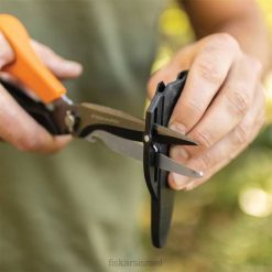 - פלדה מוקשחת לחלוטין, טחינה מדויקת, רב שימושיתלהבים על מספרי גינה רב-תכליתי של Fiskars חתוכים עד הקצה ונשארים חדים