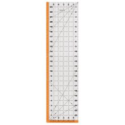 - 6 אינץ’ x 24 אינץ’ סרגל אקרילי שקוף מאפשר לך לראות היכן אתה חותך וכולל קצבאות תפר מודגשות לחיתוך רצועות ורשת לחיתוך צורה פשוטה