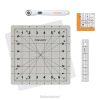 - סרגלים אקריליים שקופים בגודל 6.5 אינץ’ x 6.5 אינץ’ ו-6.5 אינץ’ x 24.5 אינץ’ מאפשרים לך לראות היכן אתה חותך וכוללים קצבאות תפר מודגשות