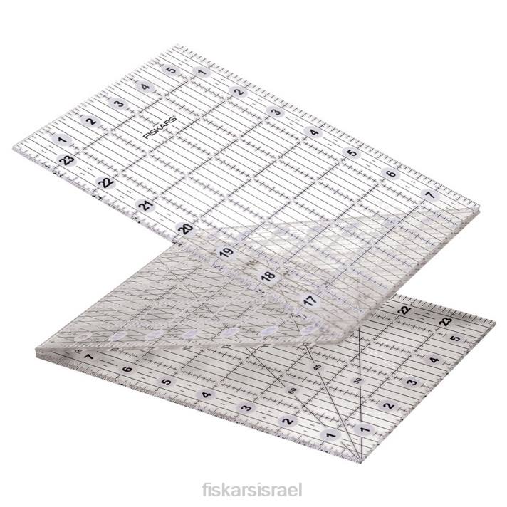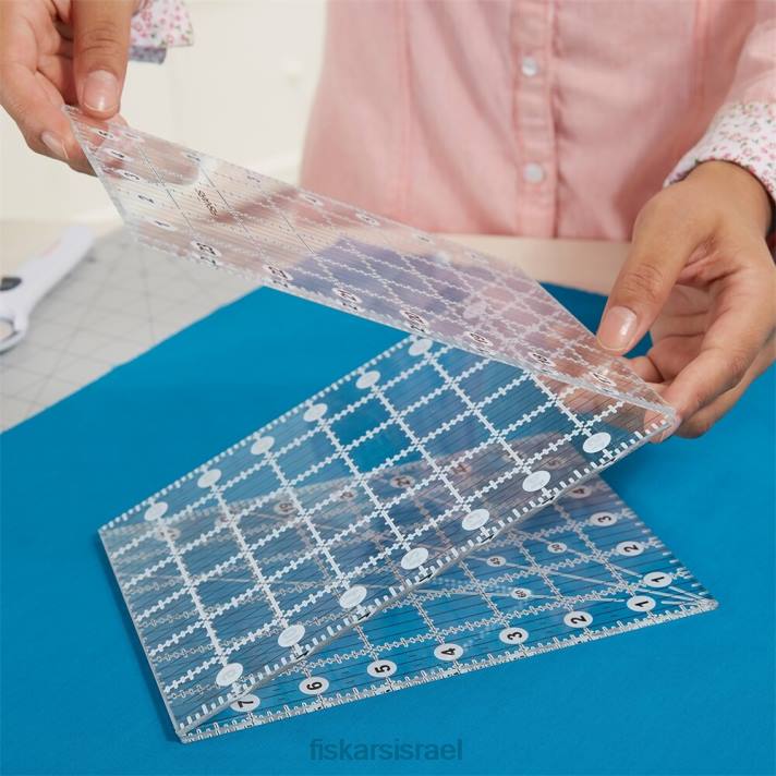 סרגל בגודל 6 אינץ’ x 24 אינץ’ מתקפל לשליש מגודלו עבור כלי מדידה נייד המאפשר לך לבצע חיתוכים ארוכים ללא נפח של סרגל רגיל. עיצוב יציב ונוח מקל על חיתוך רצועות בד ישירות מהבורג, בעוד שמיקום הסרגל המקופל בגודל 6 אינץ’ x 8 אינץ’ נהדר עבור חתכים קטנים יותר ואחסון. צירים ברורים ועמידים מאפשרים לסרגל לשכב שטוח לחלוטין לחיתוכים חלקים מבלי להיתפס או להיתקע. קווים כוללים צמתים ברורים ושני גוונים לשיפור הנראות בבדים בהירים, כהים ובדפוסים. קווי זווית פלוס, 30, 45 ו-60 מעלות מפשטים חיתוך זווית.