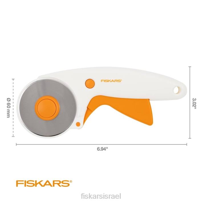 - חותך סיבובי הדק Fiskars 60 מ”מ הוא אידיאלי לחיתוכים חלקים באמצעות חבטות ובדים עבים, כולל קנבס, ג’ינס ועור