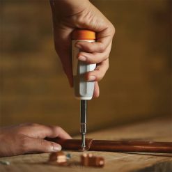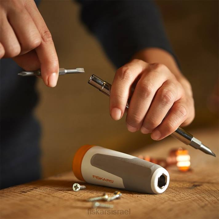 - המברג המדויק של Fiskars כולל ידית מסתובבת חופשית הממנפת את כוחך כדי לנהוג בברגים עם כוח מרבי כלפי מטה