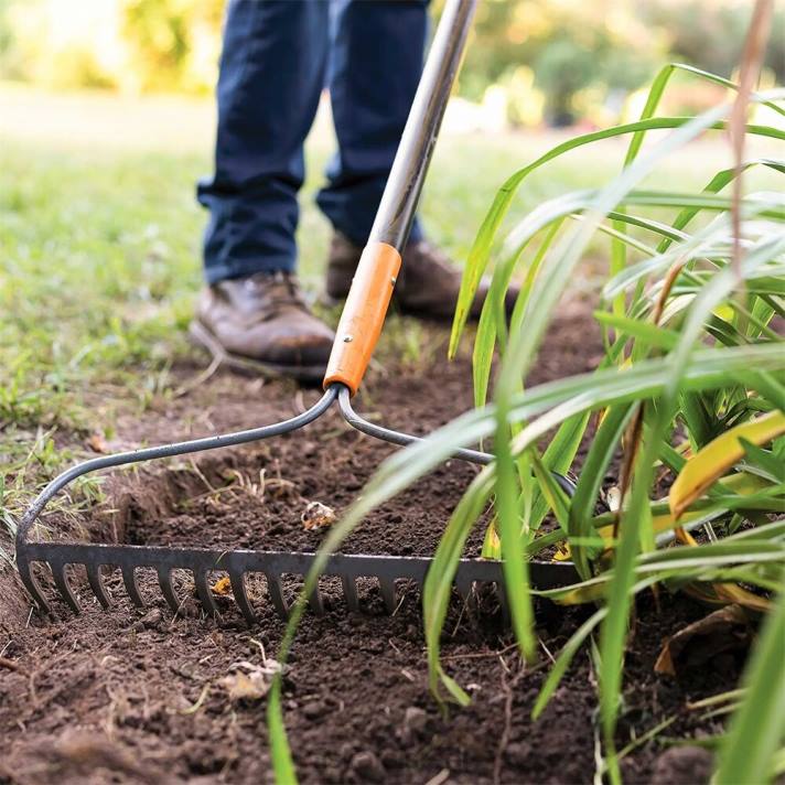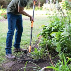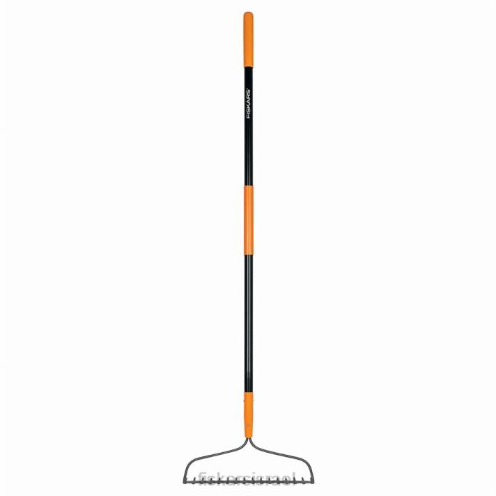 - מגרפה לגינה של fiskars כוללת שיניים כבדות שהופכות אותה לאידיאלית להתרופפות או ליישור אדמה, כמו גם להסרת דשא מת מדשאות
